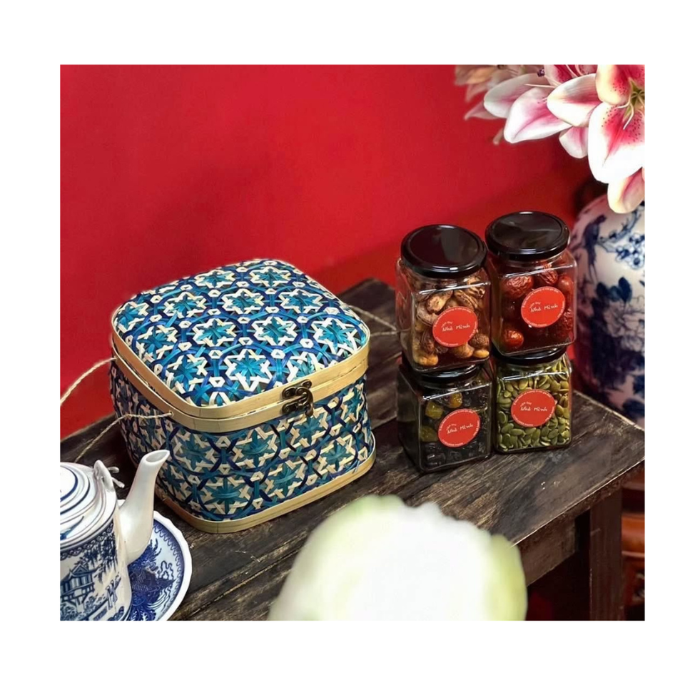 Cesta de Regalo de Bambú Tejida Hexagonal Roja con Asa, Decoración Tradicional Vietnamita - Ideal para Cajas de Regalo y Cestas Festivas.