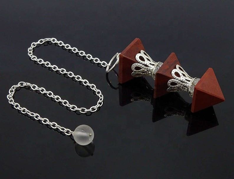 Péndulo de curación, piedra jaspe roja, 3 pirámide, Péndulo de espiga de cristal