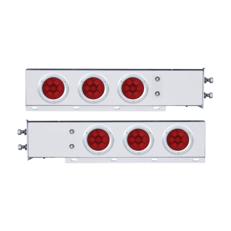 Par de LED rojos y lentes para barra de luz trasera con muelle, patrón de pernos 2.5", funciones stop/giro/posición, caja