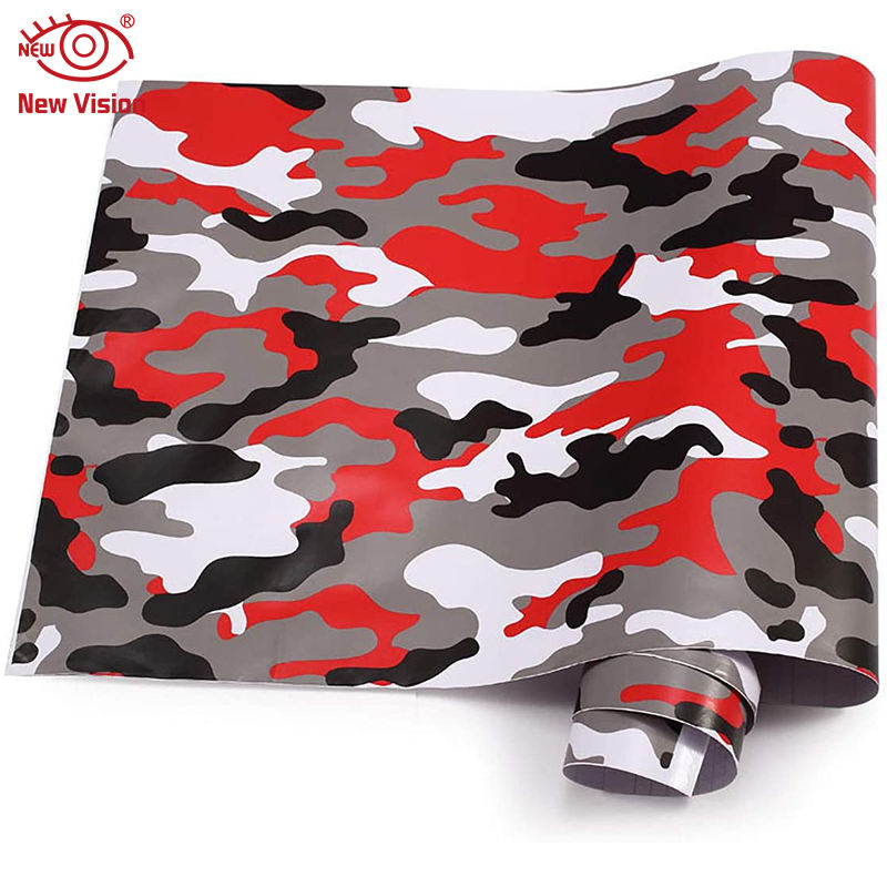 Vinilo de Camuflaje Rojo Grande con Diseño de Nieve Blanca para Recubrimiento de Autos, Camionetas, SUV, Barcos, Motocicletas y Bicicletas