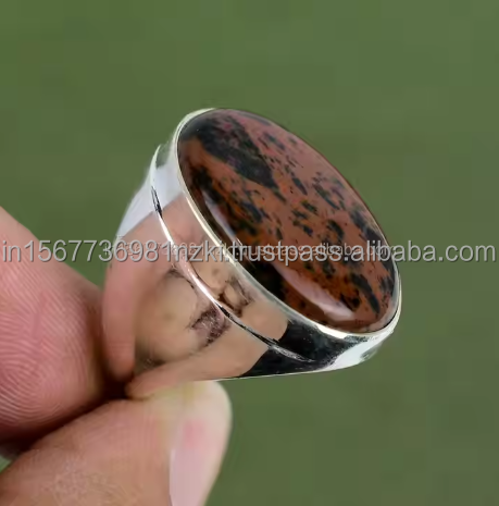 Nombre del producto:Anillo de 925 Plata de Ley caoba obsidiana