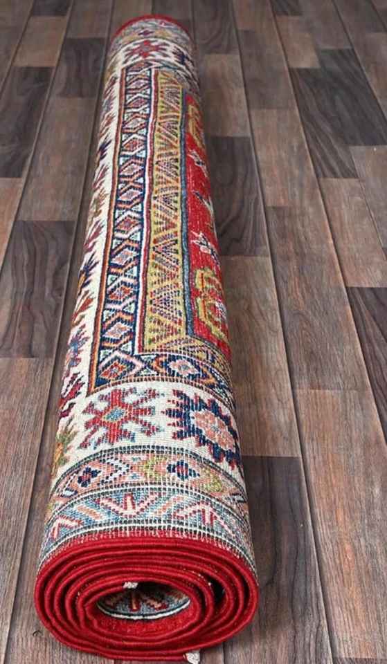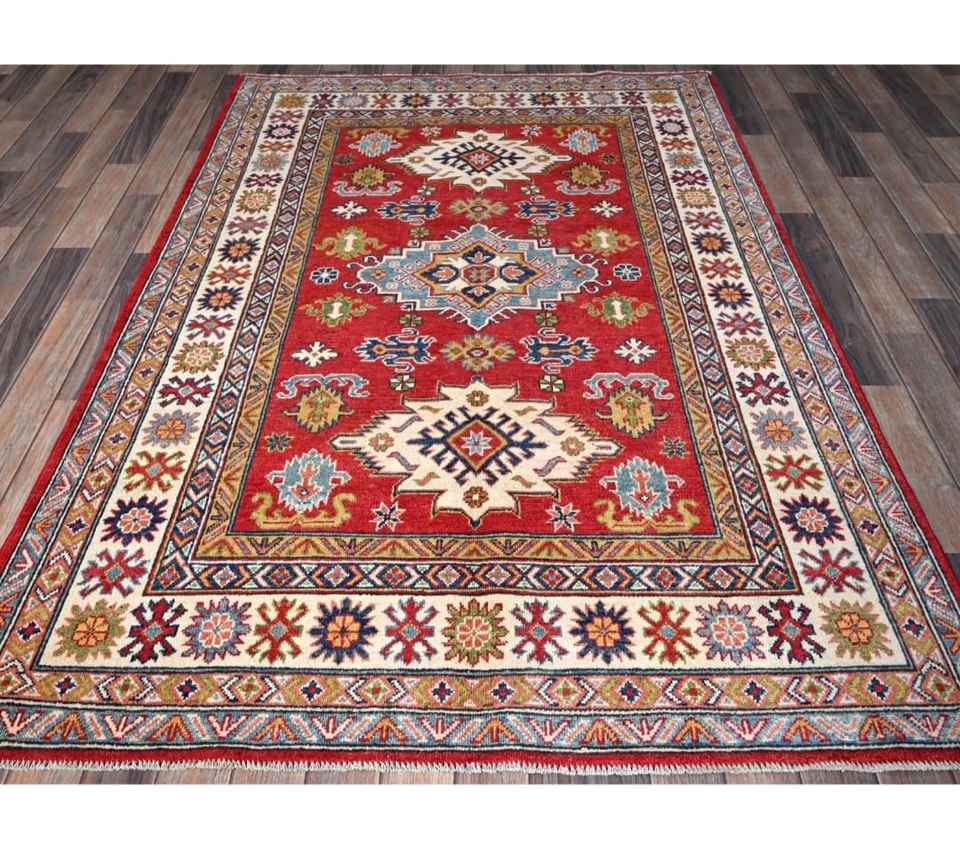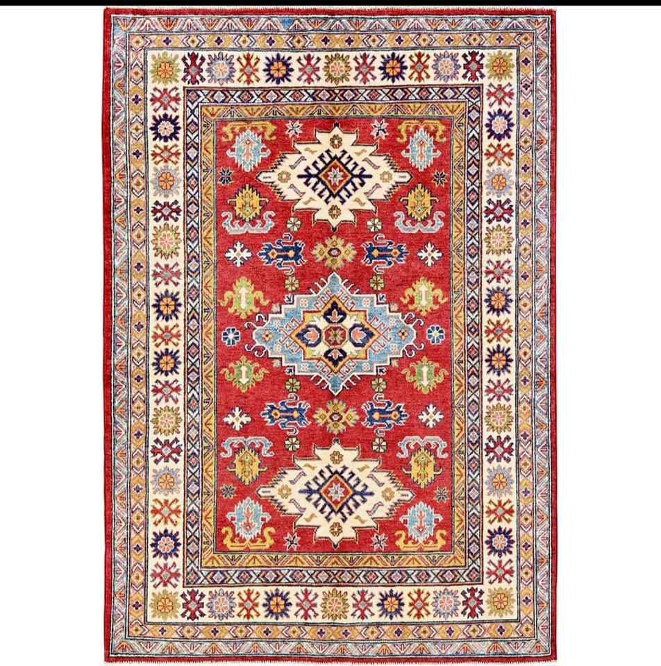 Alfombra roja moderna de lana para ejercicio en casa, diseño de medallones geométricos Kazak anudados a mano, conjuntos de alfombras con patrón abstracto personalizables