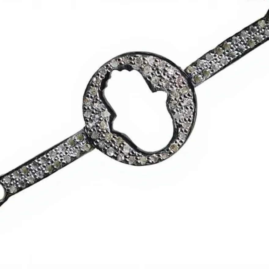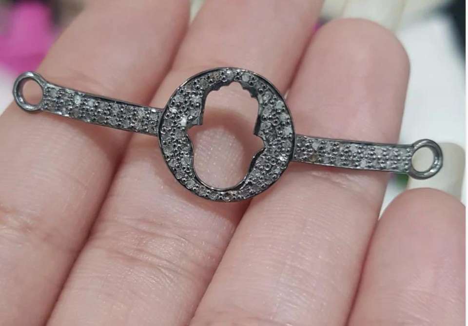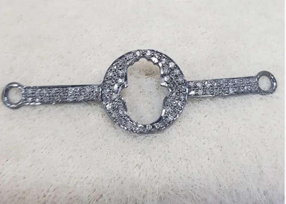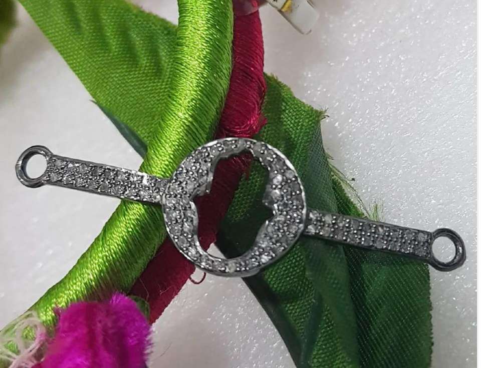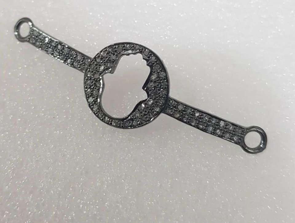 Red Mountain Gems CON022 Conector circular con diseño recortado Pave Diamond Plata de Ley 925 Tamaño de 50x13MM para la fabricación de pulseras