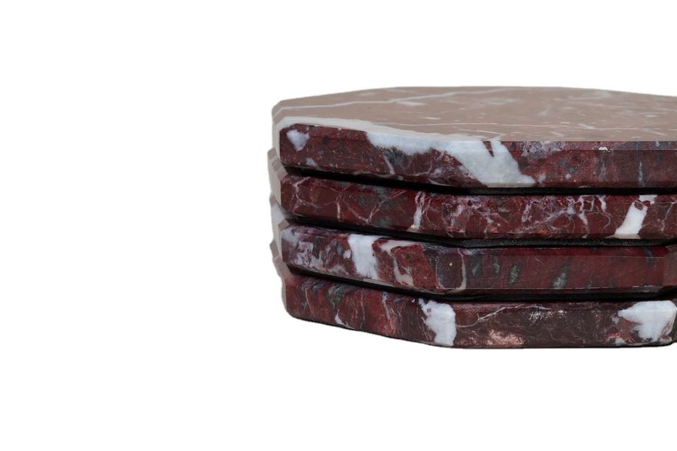 Juego de posavasos octogonales de mármol rojo