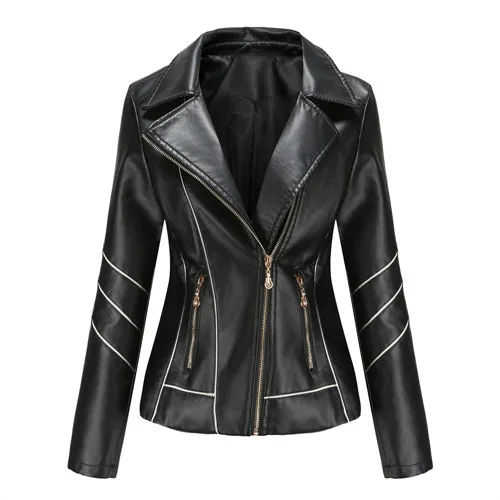 Chaqueta de piel sintética roja para mujer, chaquetas de motorista informales a la moda, prendas de vestir, Tops femeninos, chaqueta de cuero negro para primavera y otoño, abrigo