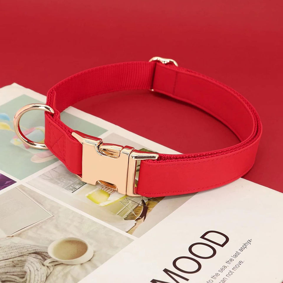 Collares para perros rojos de PU y nailon, impermeables, ajustables, duraderos, con forro suave, ligeros, perfectos para perros pequeños y grandes