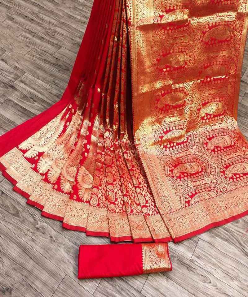 Sari de Seda Estampado en Rojo con Blusa Blanca para Bodas Sencillas y Fiestas para Mujer