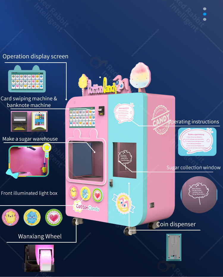 Máquina Expendedora Automática de Algodón de Azúcar con Brazo Robótico y Chip de Detección Exclusivo Red Rabbit 2026