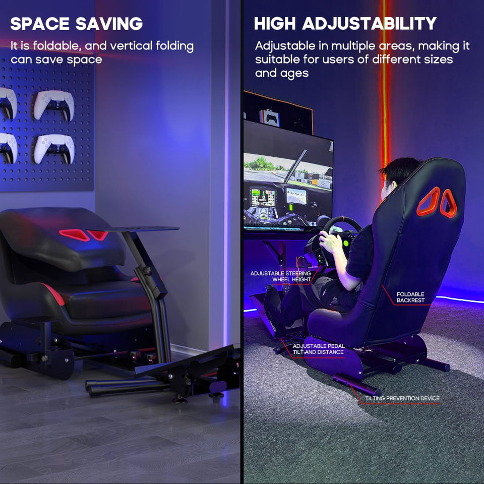Cabina de Simulación de Carreras Roja con Soporte para Volante y Asiento de Videojuegos para Accesorios de TX Xbox PS4 PS5 PC