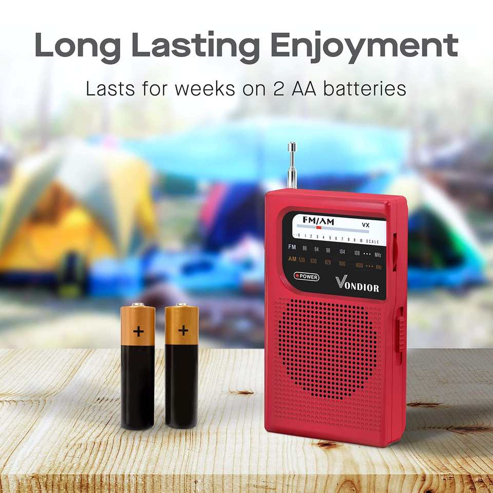 Radio AM FM Retro Roja de Bolsillo, Funciona con Pilas AA, Antena Telescópica de Alta Sensibilidad, Receptor de Transmisiones Portátil para Exteriores