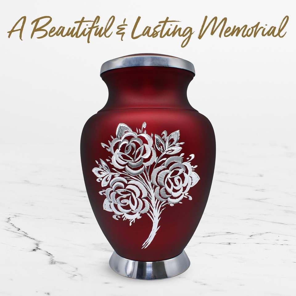 Urna de cremación de rosa roja-Urna grande para cenizas humanas con bolsa premium-Urna de rosas hecha a mano para cenizas para adultos-Honra a tu ser querido