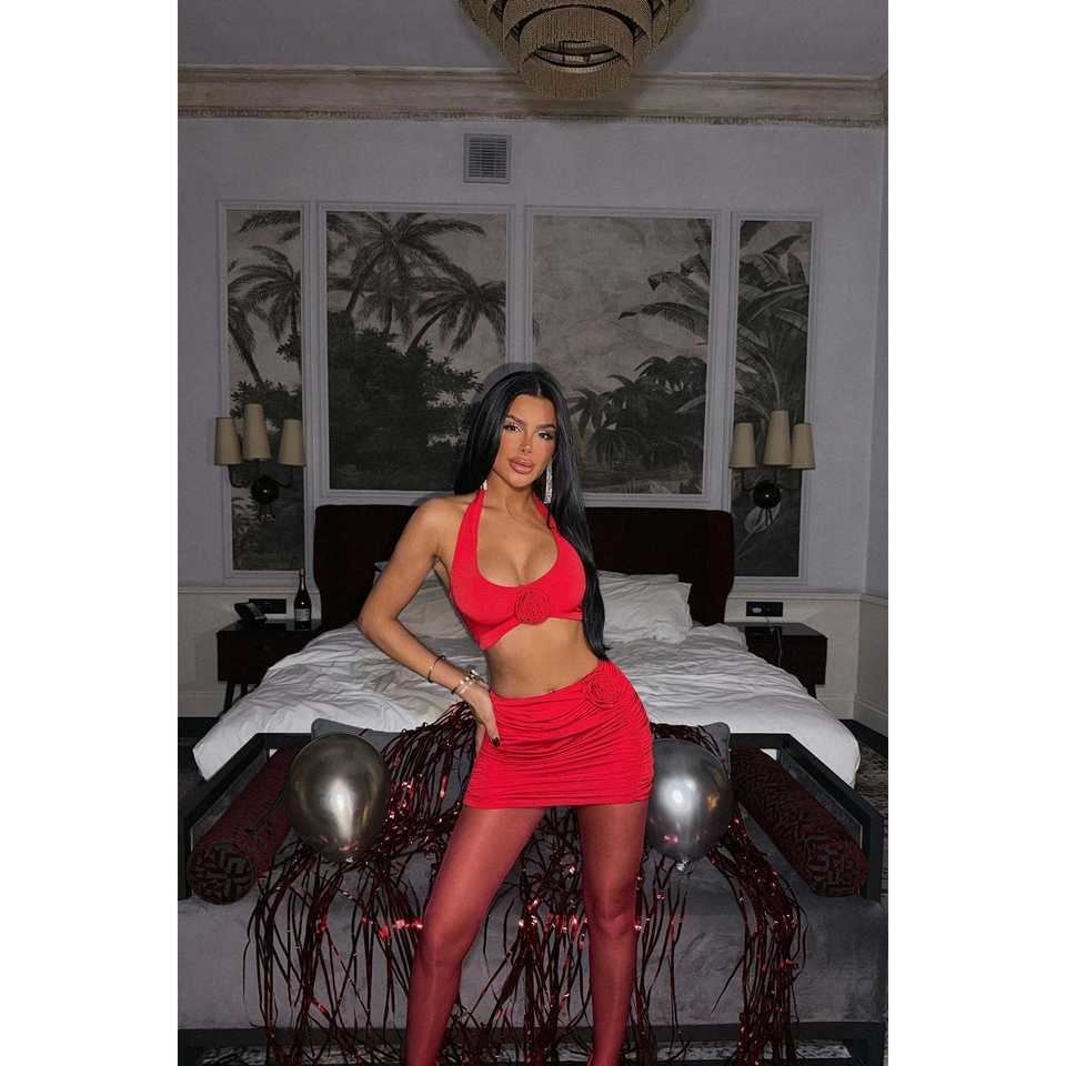 Conjunto de Falda de Dos Piezas para Mujer con Detalle de Rosa Roja, Largo por Encima de la Rodilla, Un Conjunto