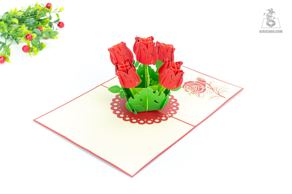 Artesanía 3D rosas rojas Pop-up Kirigami flor tarjeta boda cumpleaños invitación tarjeta con amor estilo hecho Vietnam papel Material