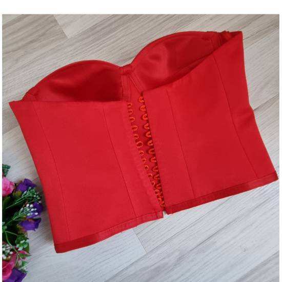 Corsé de Satén Rojo con Lazos