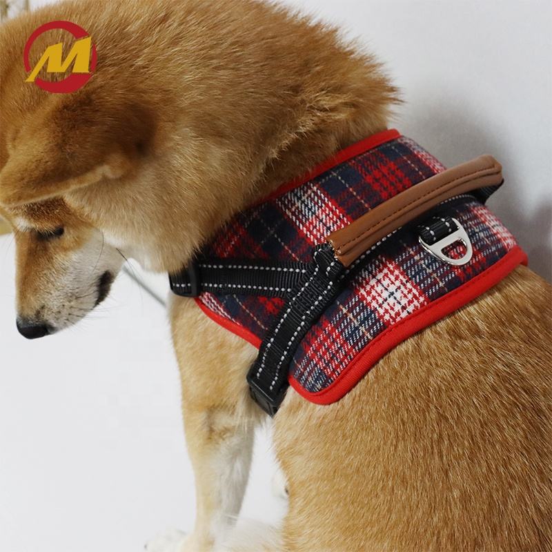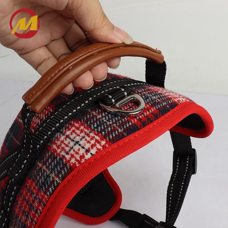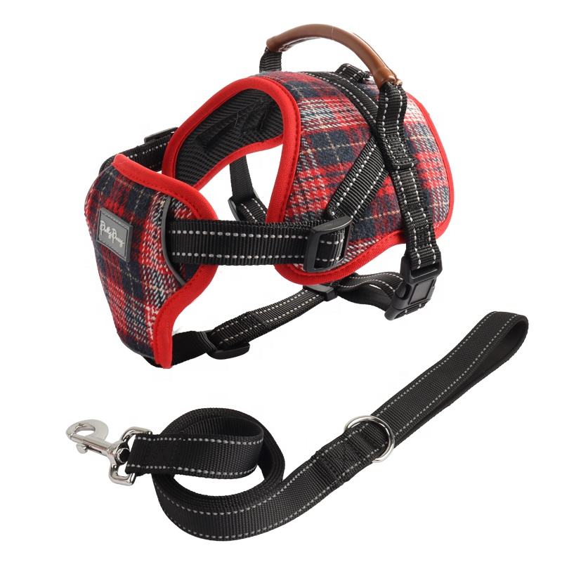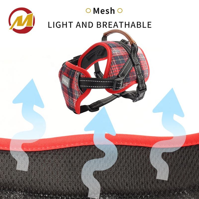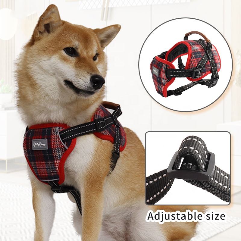 Rojo estilo escocés a cuadros ajustable reflectante transpirable Oxford suave chaleco entrenamiento mascota táctico sin tirar correa de perro arnés