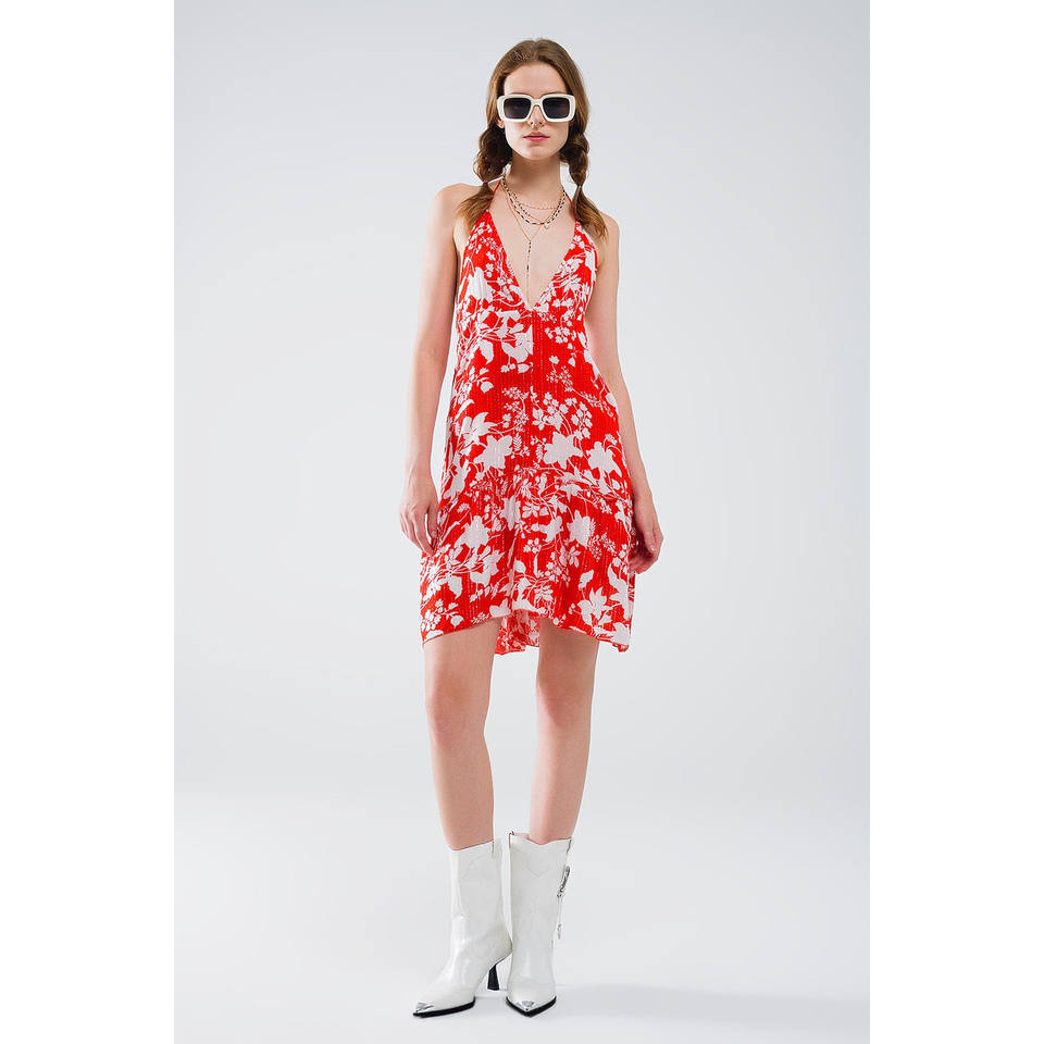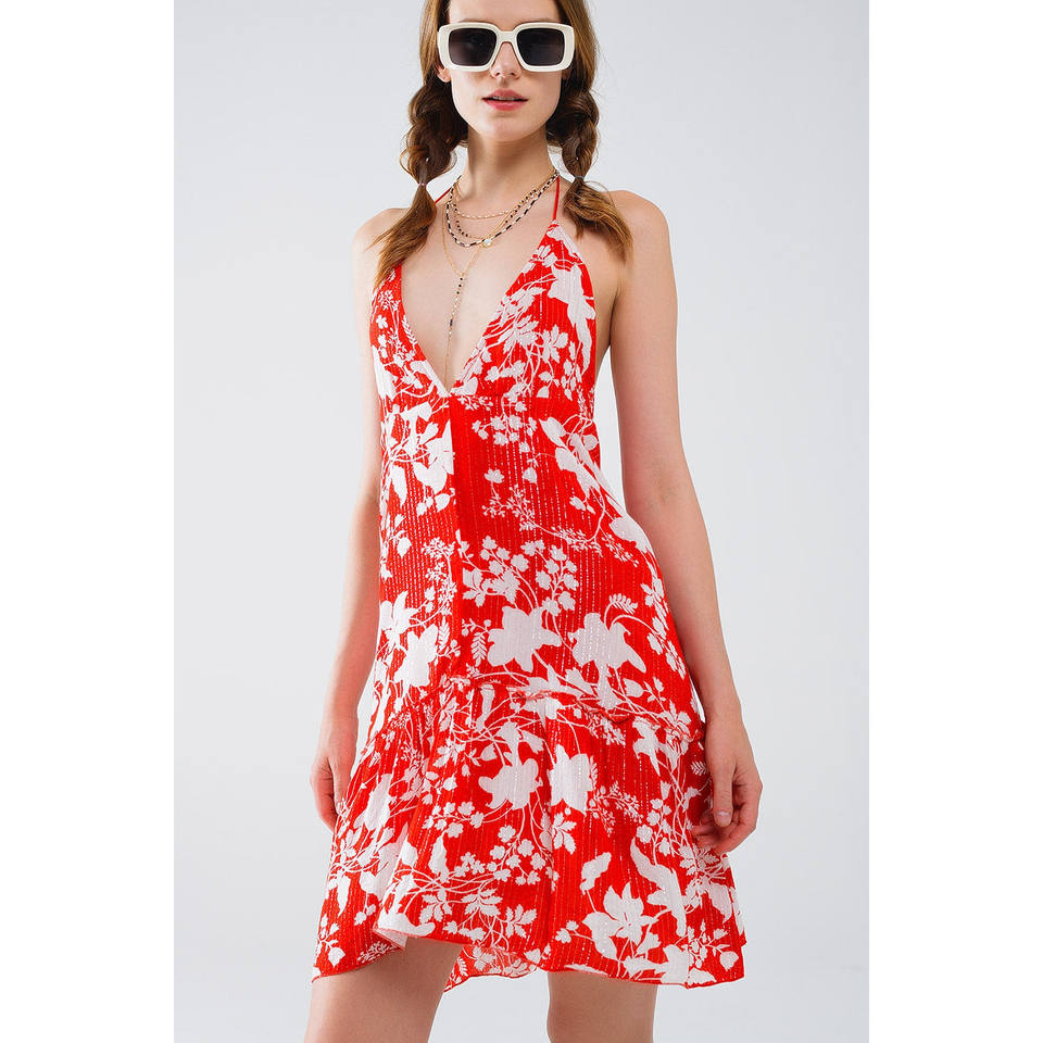 Vestido Corto Rojo Estampado Floral Estilo Boho con Detalle de Lurex