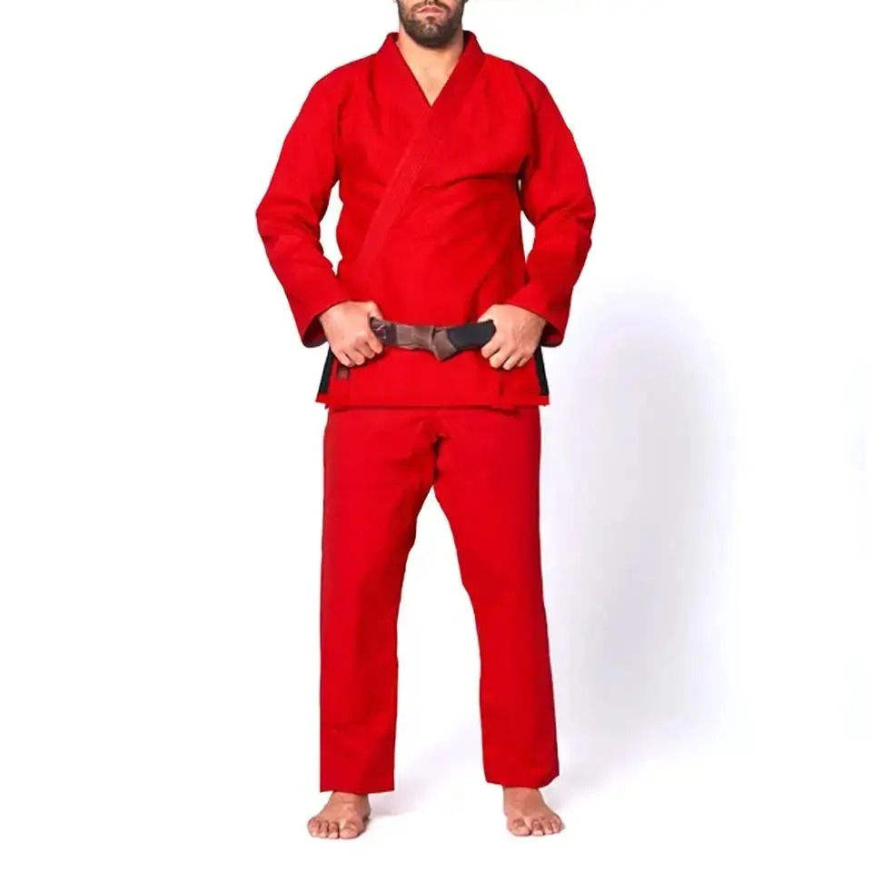 Uniformes de Entrenamiento de BJJ, Karate y MMA de Color Rojo Sólido Personalizados, con Logotipo Delantero y Trasero, Unisex para Adultos, Ligeros, Transpirables y Elásticos
