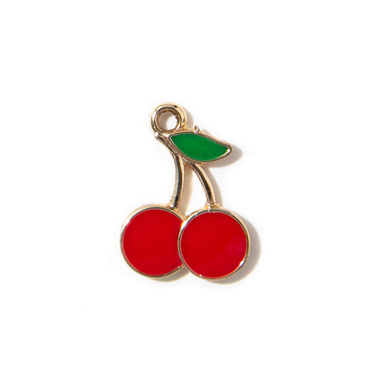 Colgante de cereza tridimensional roja, pendientes DIY, pulsera, accesorios de joyería de Metal para mujer, efecto de goteo con cereza roja