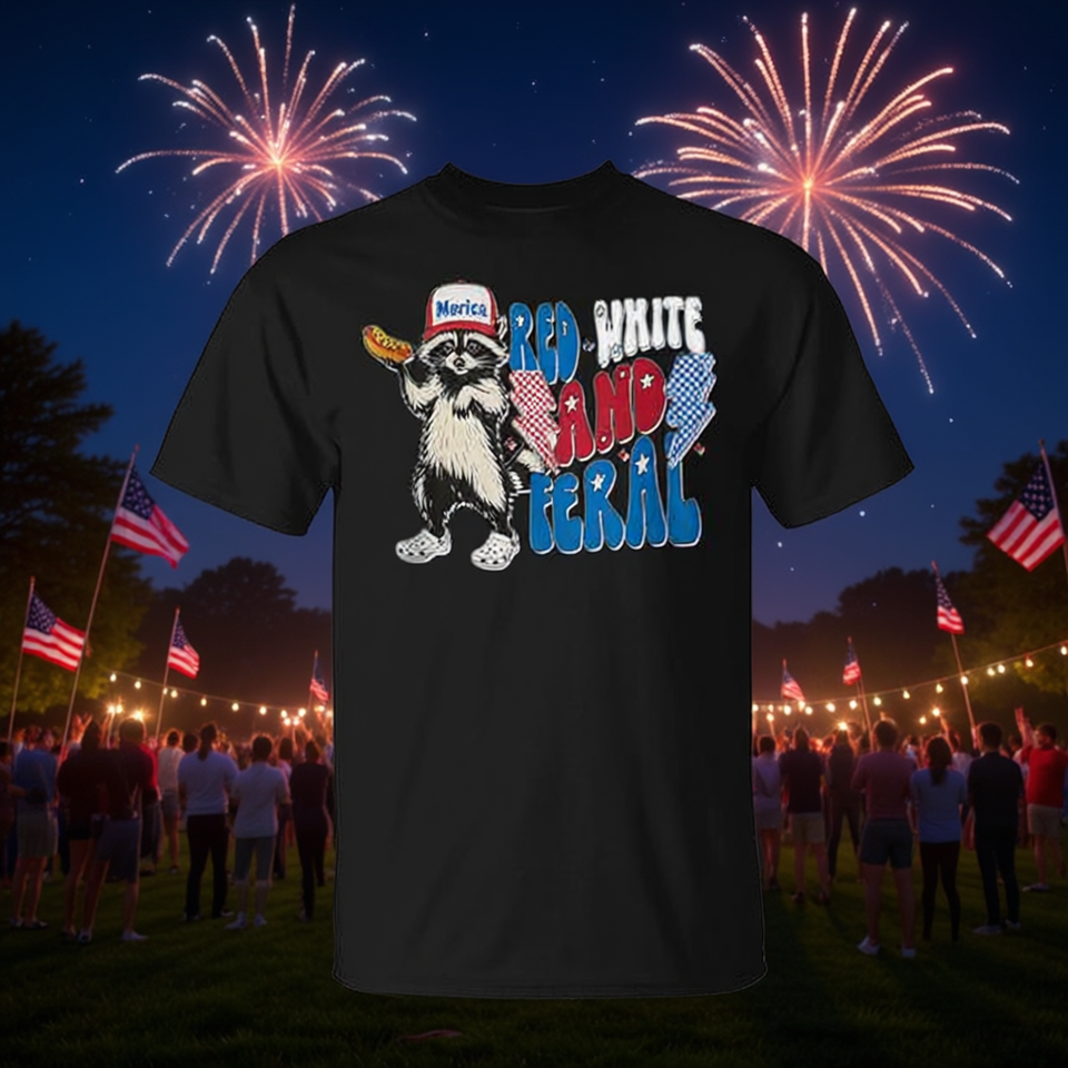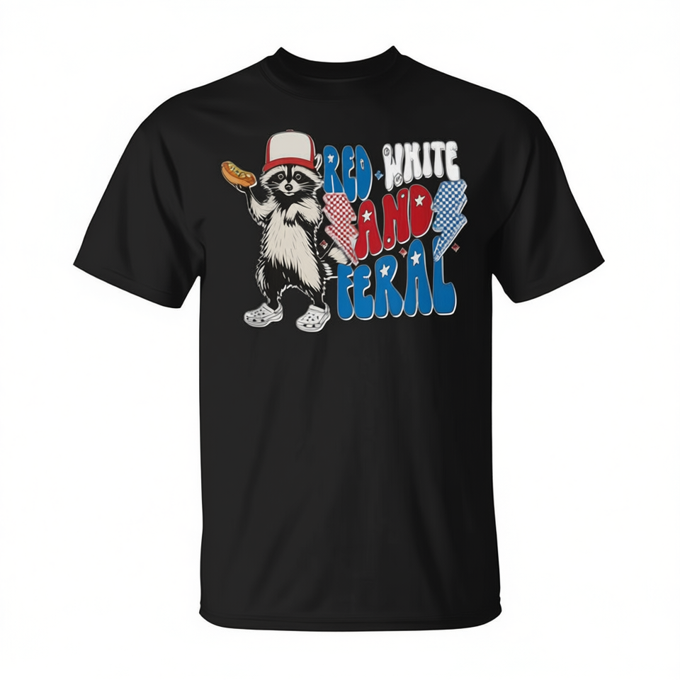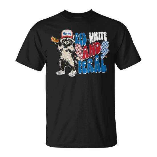 Camiseta roja, blanca y con diseño de mapache para el 4 de julio