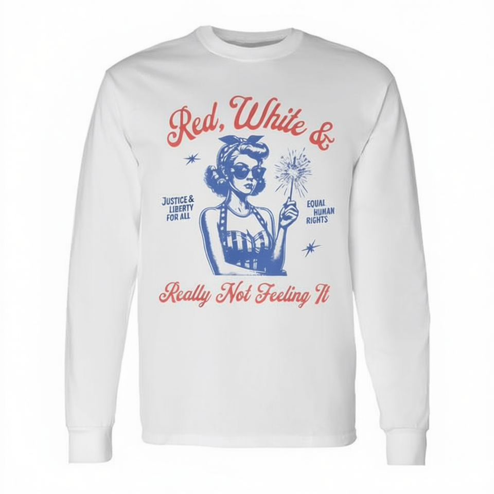 Camiseta de manga larga roja, blanca y con la frase 'Really Not Feeling It'