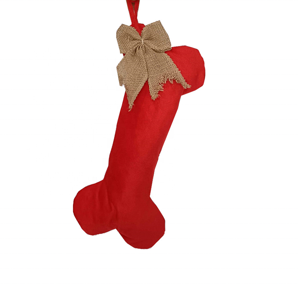 Medias navideñas de hueso de perro rojo, blanco y lino con lazo de arpillera, medias navideñas GRANDES para perros, medias para mascotas