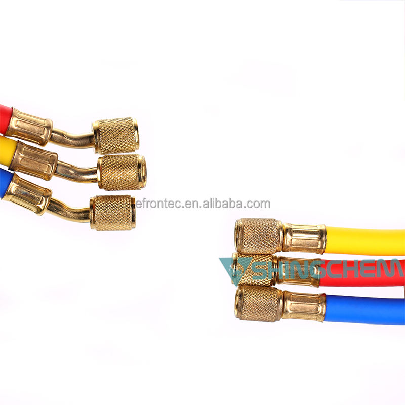 Piezas de aire acondicionado de goma rojo amarillo azul Gas refrigerante R22 R134 R410 130/180mm mangueras de carga de refrigeración