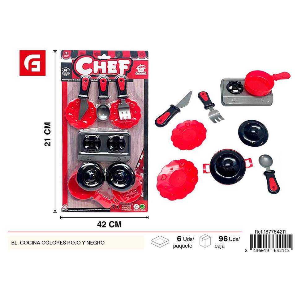 Mini juego de juguetes de cocina de plástico rojo y negro para juego de interior seguro juguete de cocina para niños