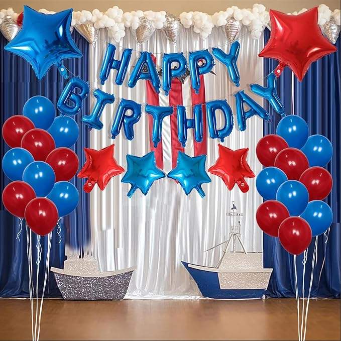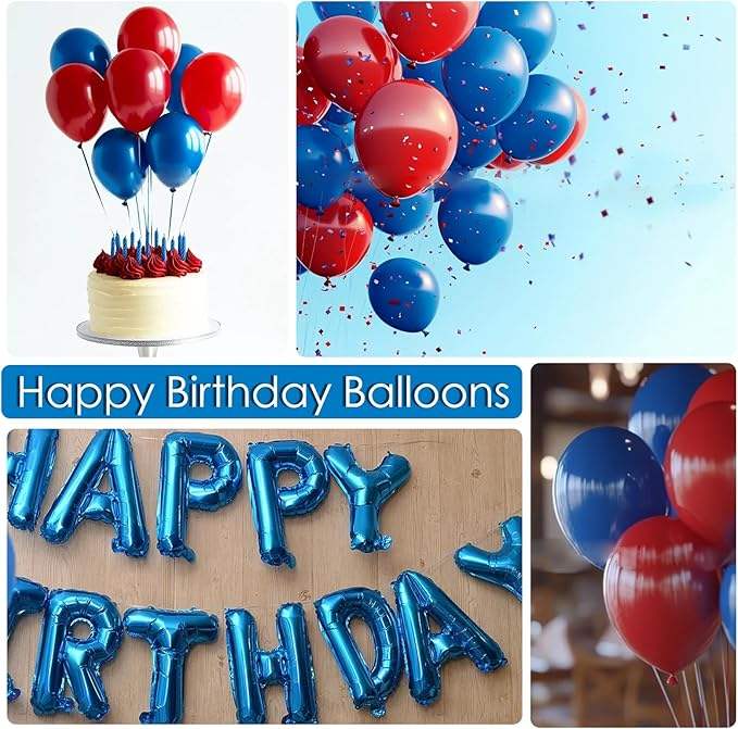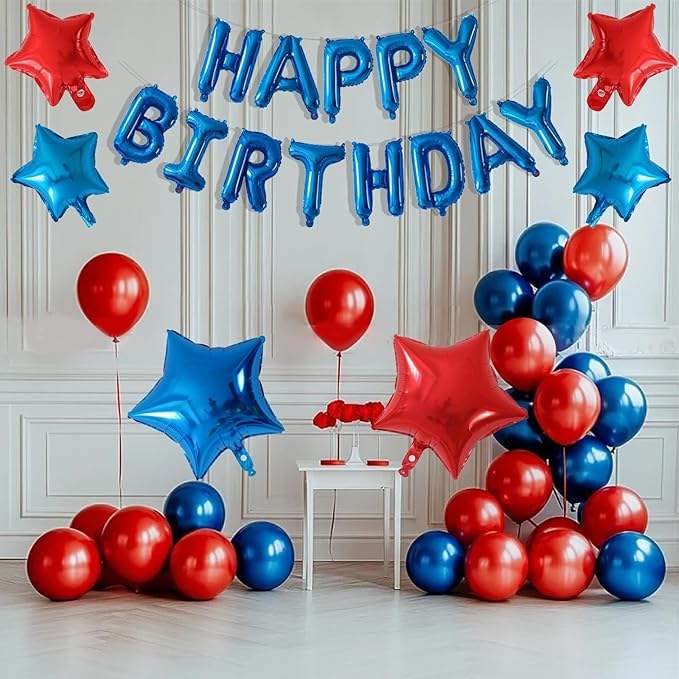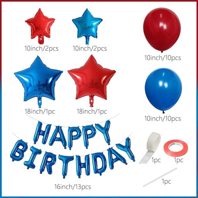 Set de Globos Rojos y Azules de 28 Piezas, Kit de Decoración para Fiesta Patriótica del 4 de Julio con Pancarta de Feliz Cumpleaños