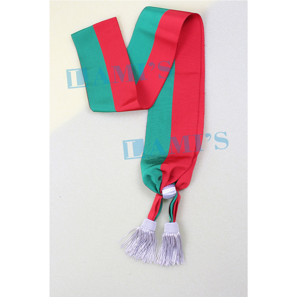 Faja de bufanda Regalia roja y verde con borla plateada, las mejores fajas masónicas Regalia Freemason a la venta