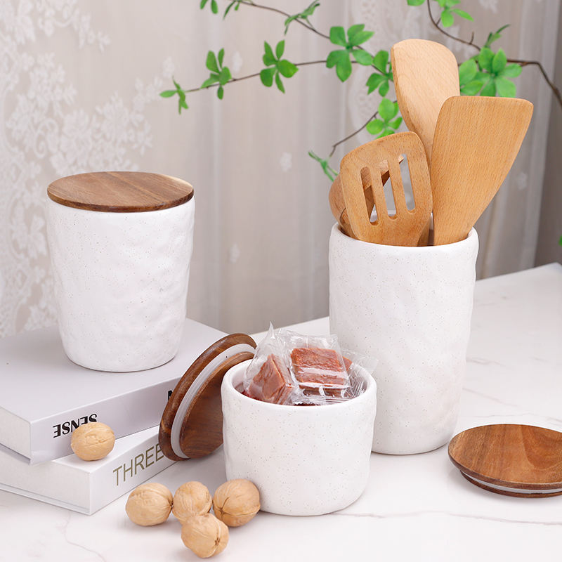Redeco Venta caliente Tarro de almacenamiento de cocina personalizado con tapa Tarro sellado herméticamente Té Café Azúcar Sal Tarro de almacenamiento de cerámica
