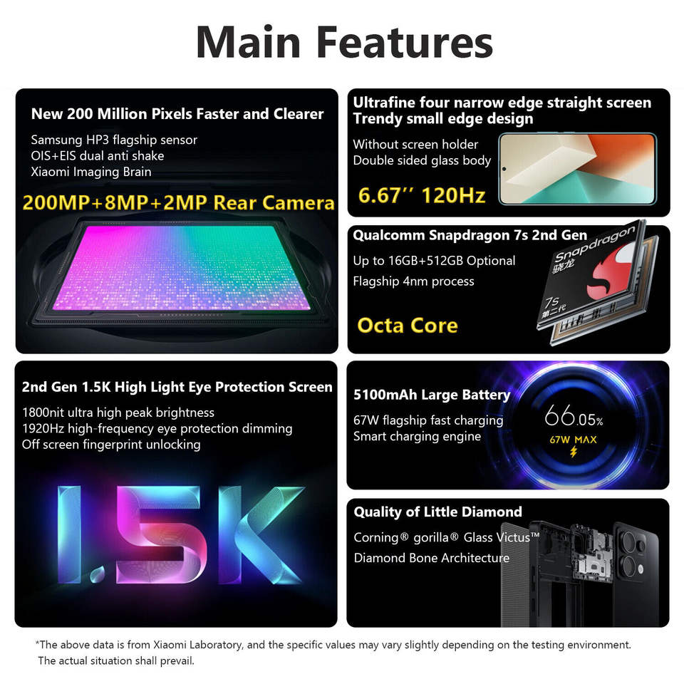 Redmi Note 13 Pro 5G Móvil Desbloqueado Global ROM Smartphone AMOLED Octa Core 6,7 Pulgadas 200MP 256GB 512GB
