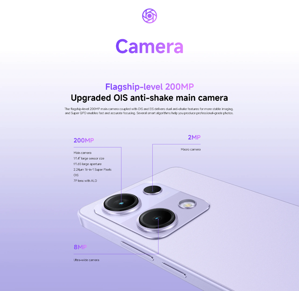 Cámara Trasera:Cámara triple de 200MP+8MP+2MP