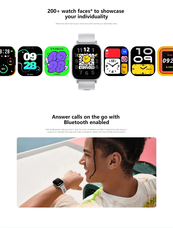 Redmi Watch 5 Reloj inteligente activo GPS Rastreador de ejercicios Pantalla AMOLED Control táctil Monitor de ritmo cardíaco a prueba de agua Banda inteligente