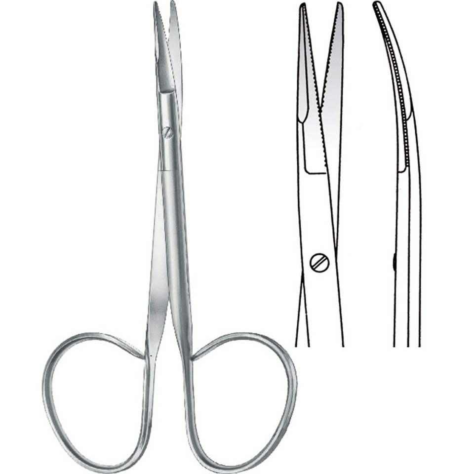 Tijeras de Sutura Tipo Cinta Reeh, Ligeramente Curvadas, Puntas Afiladas, Micro Gancho, Hoja Inferior, Fabricación Quirúrgica por Surgiright