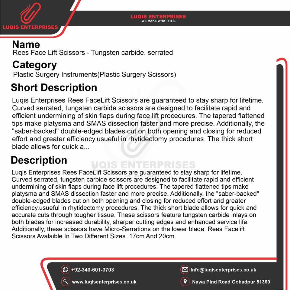 Tijeras Rees para Lifting Facial, Instrumento Quirúrgico Dentado de Carburo de Tungsteno, Herramienta de Cirugía Cosmética de Precisión de Acero Inoxidable