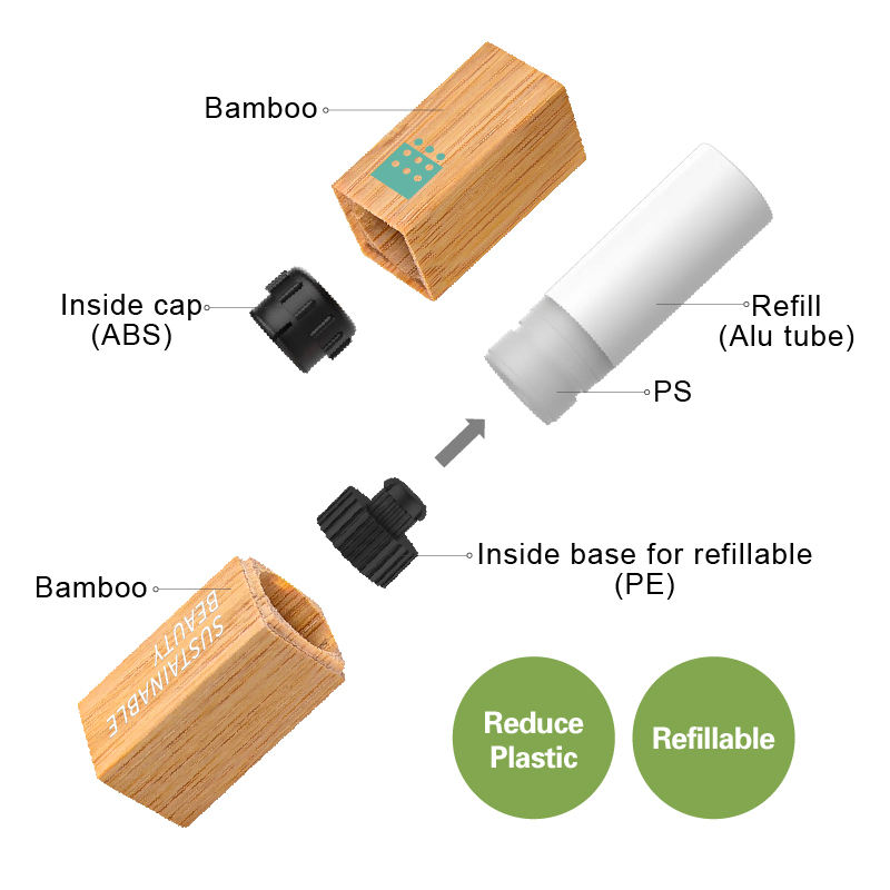 Tubos de pintalabios recargables Envase de contenedores Respetuoso con el medio ambiente Lujo Sostenible Compostable Reciclable Vacío Tubo de bálsamo labial de Bambú