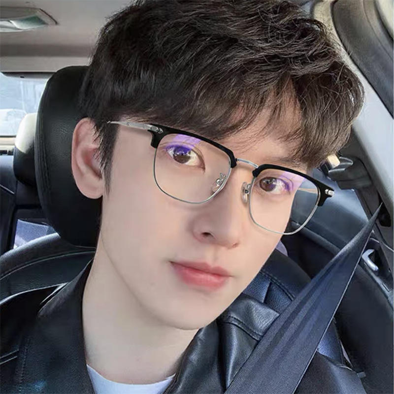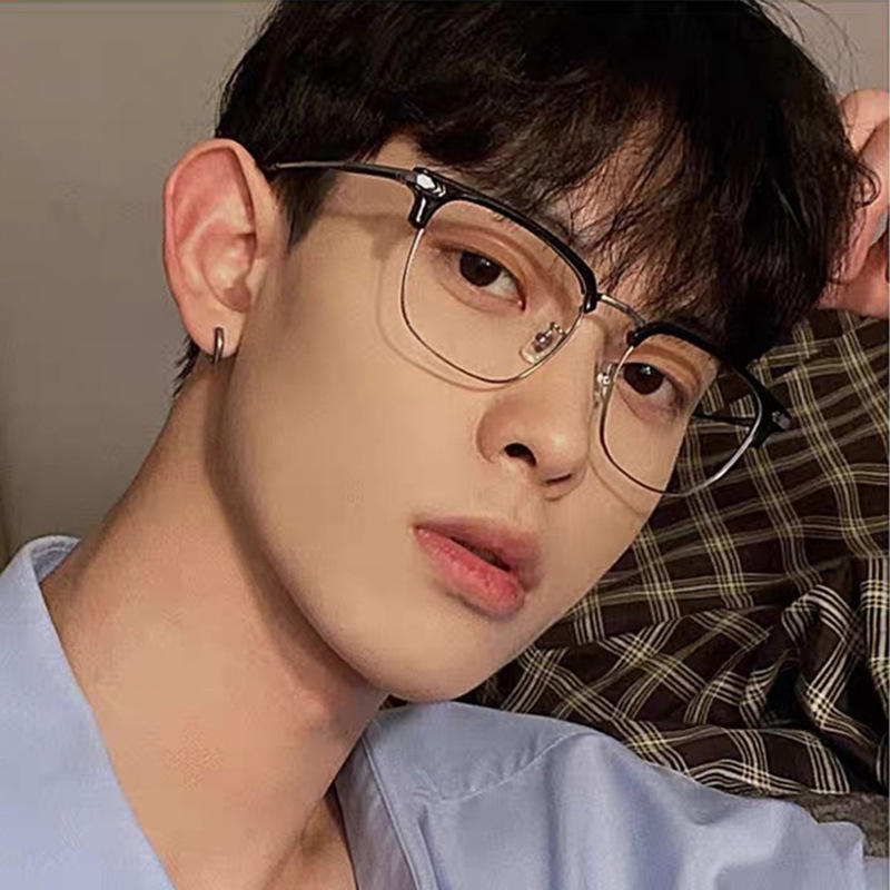 Gafas de media montura Refined Scoundrel, montura mediana, lentes AC, anti-luz azul, unisex, estilo coreano, gafas ópticas