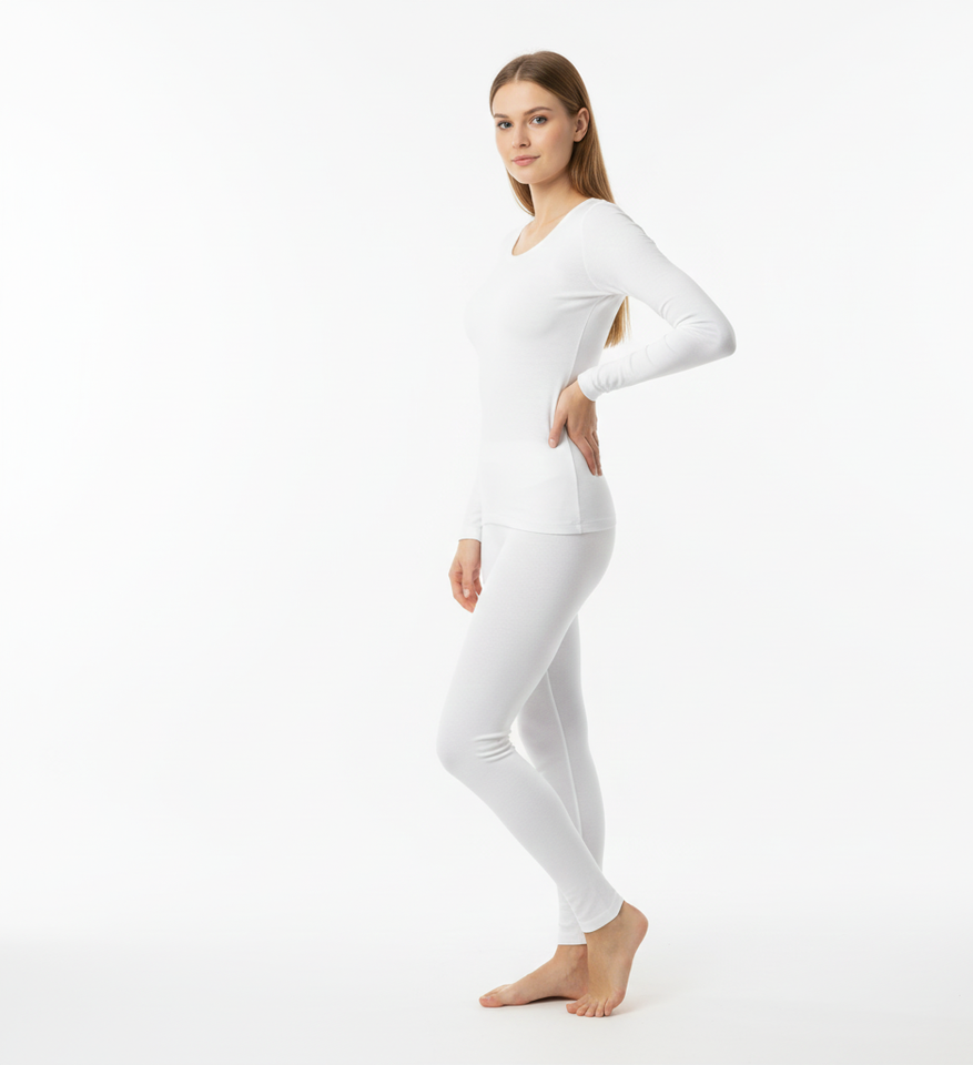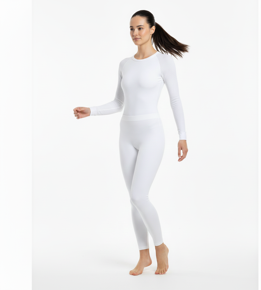 Traje Térmico Blanco para Mujer, Silueta Invernal Refinada, Manga Larga, Tejido Suave y Transpirable, Diseñado para la Elegancia de Temporada