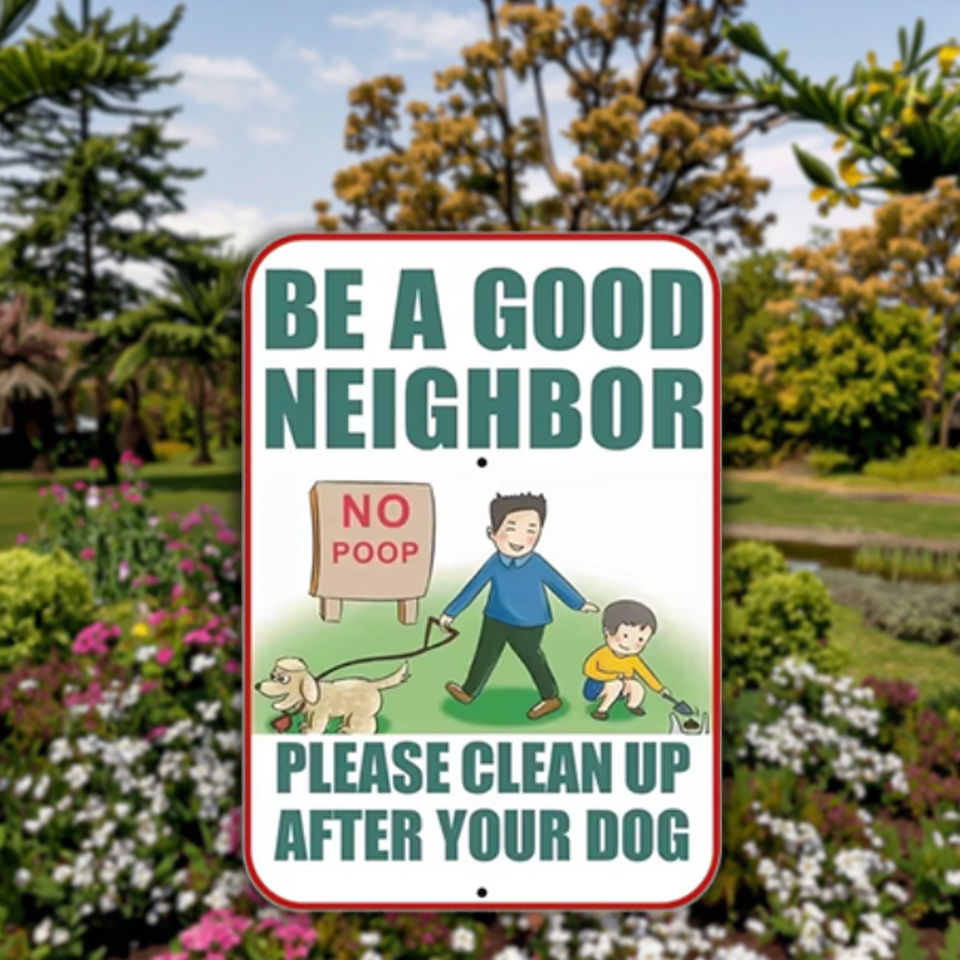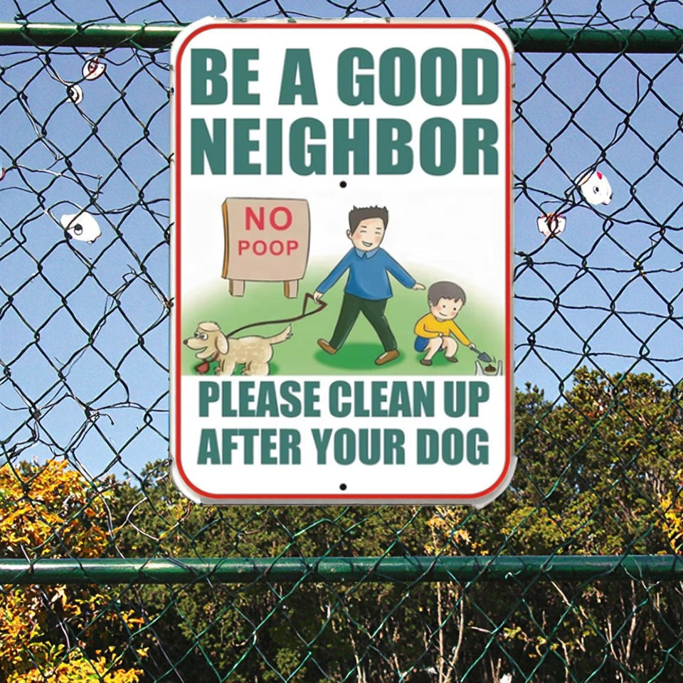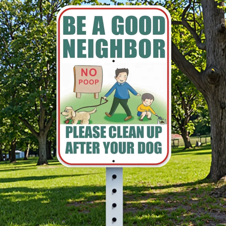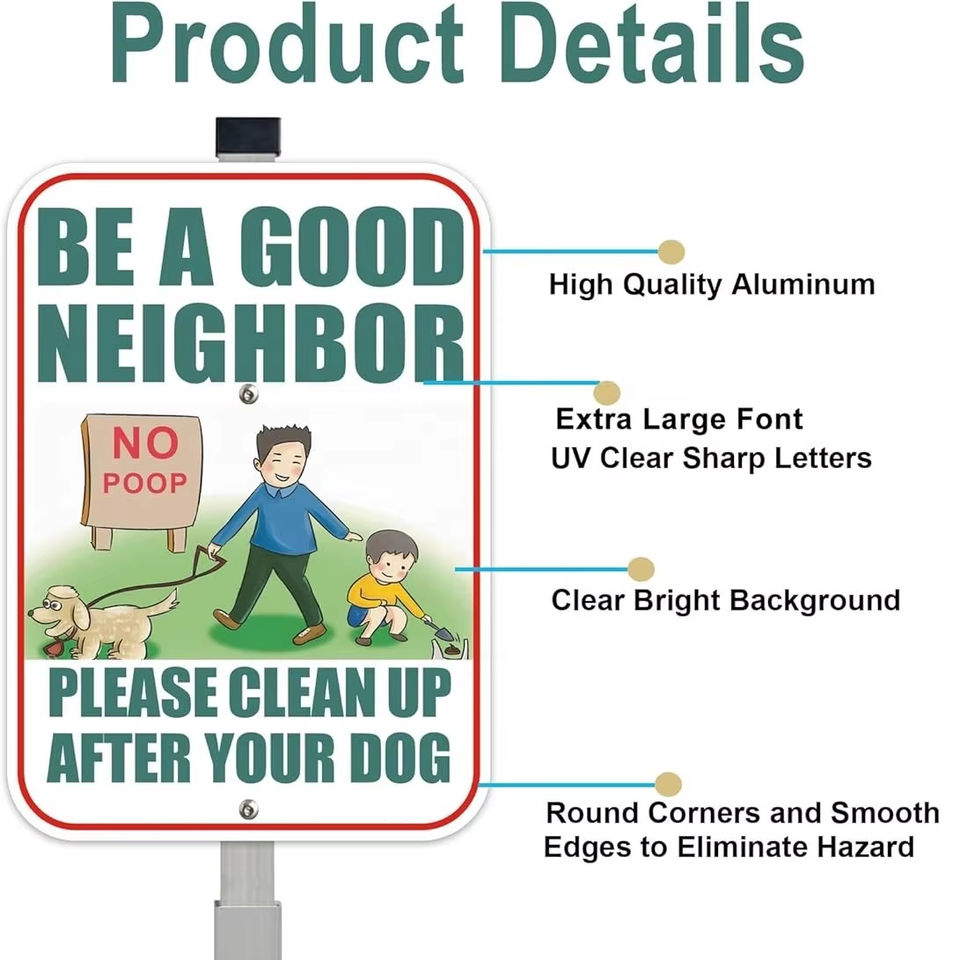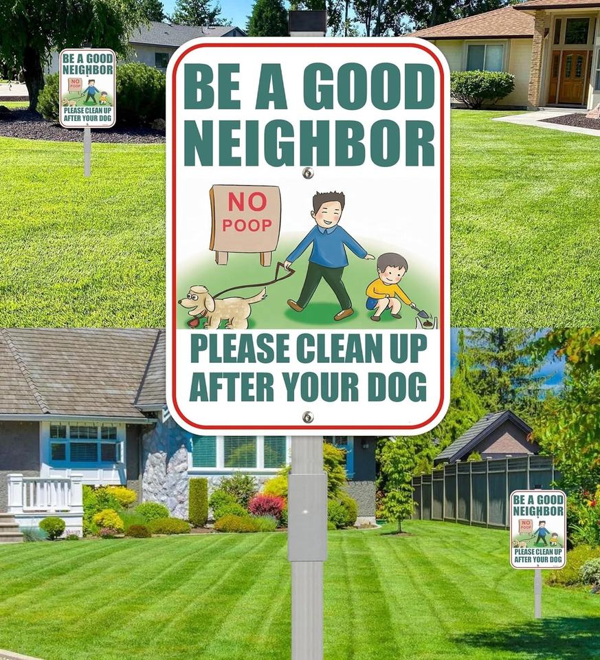 Señal de advertencia de aluminio reflectante sin caca con estaca, "Sé un buen vecino" para césped al aire libre, jardín y comunidad