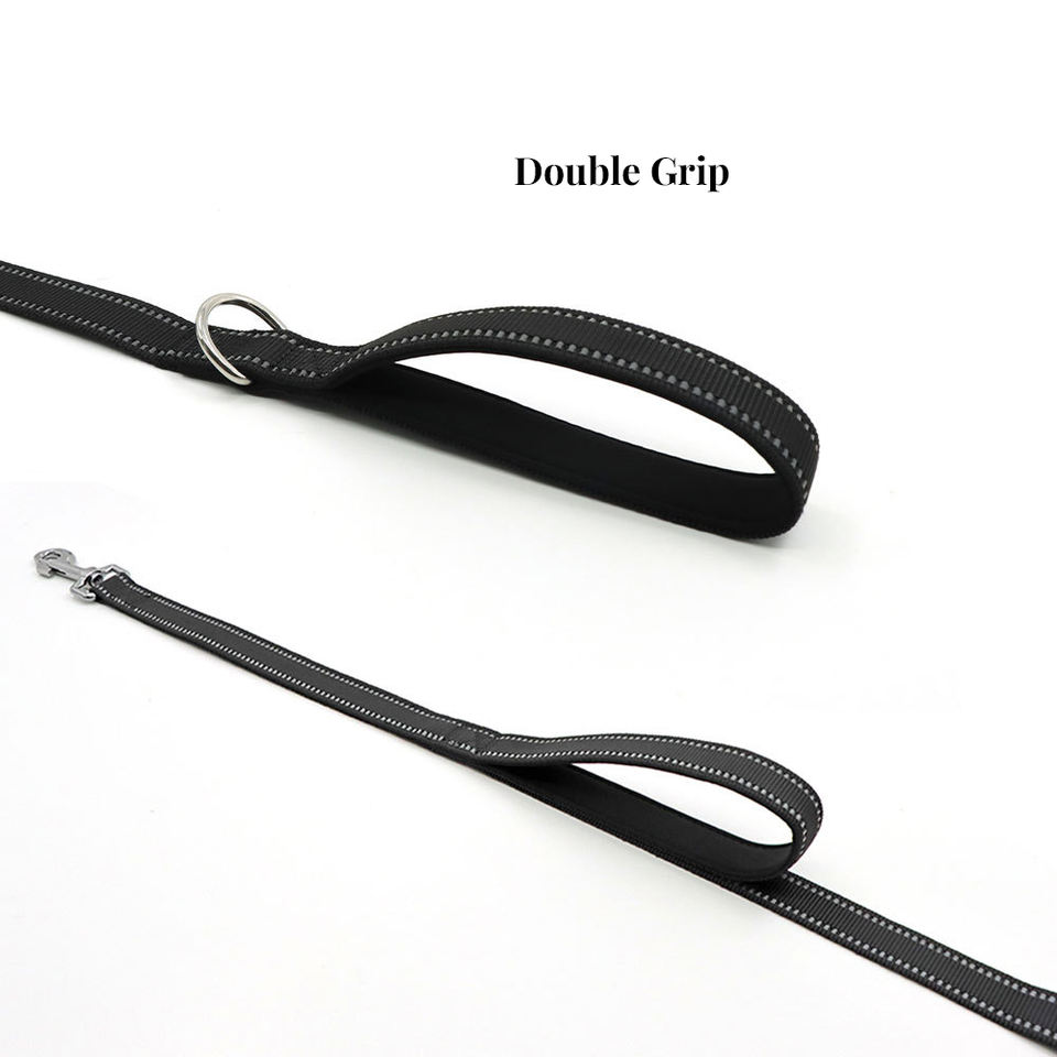 Correa reflectante para perros Cuerda para caminar nocturna con mango doble con almohadilla de neopreno Agarre cómodo para perros grandes y fuertes
