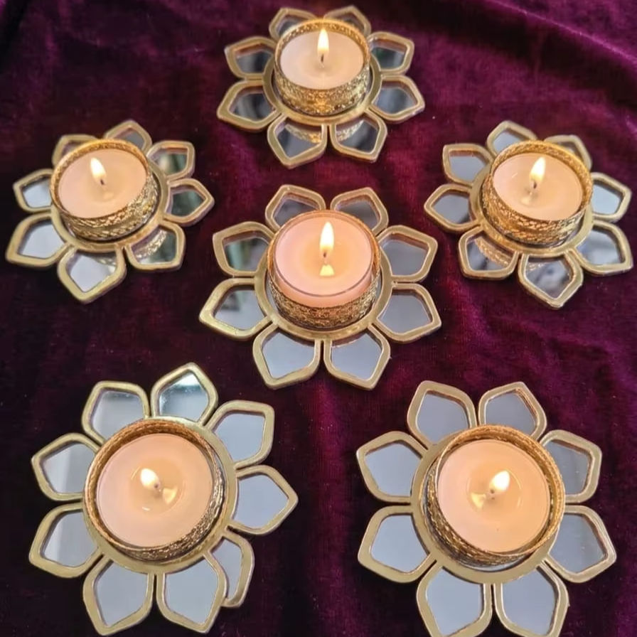 Portavelas con diseño de loto y espejo reflectante para la decoración de Diwali 2026, decoración de escaleras, decoración de balcón Rangoli
