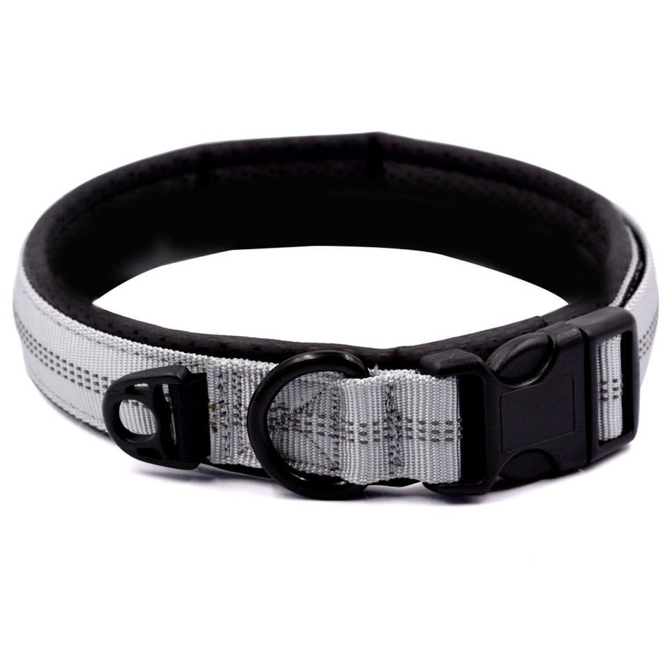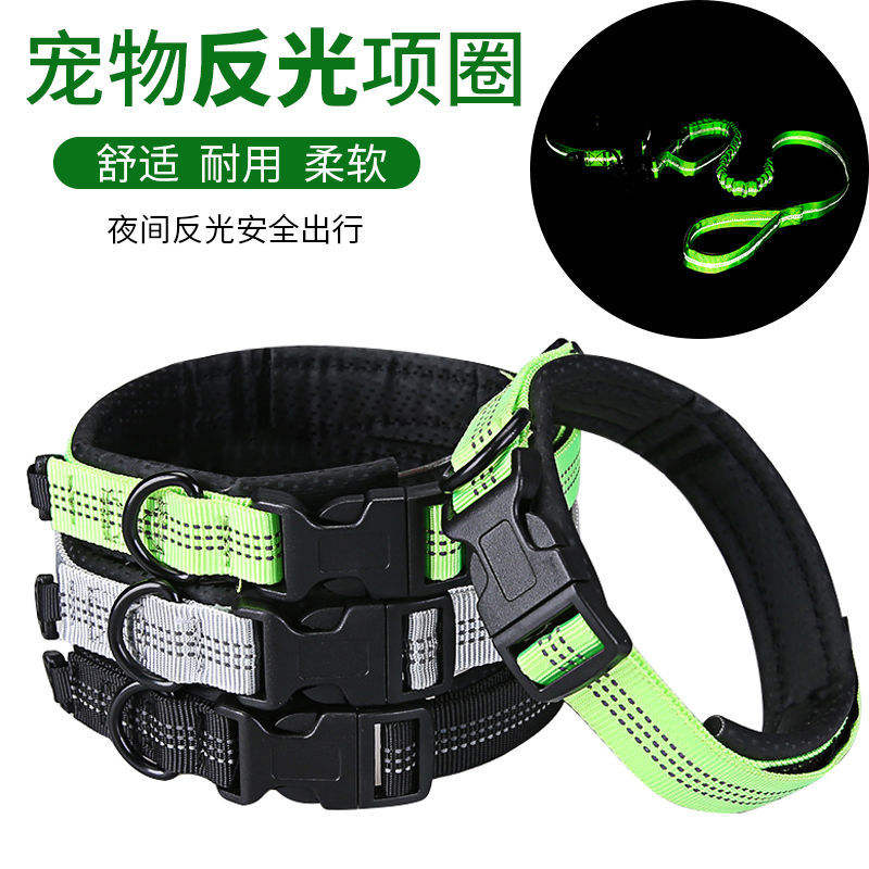 Collar reflectante de nailon para perros grandes, collar para el cuello de mascotas de estilo simple con cuadrícula de colores negro, verde y gris, con correa