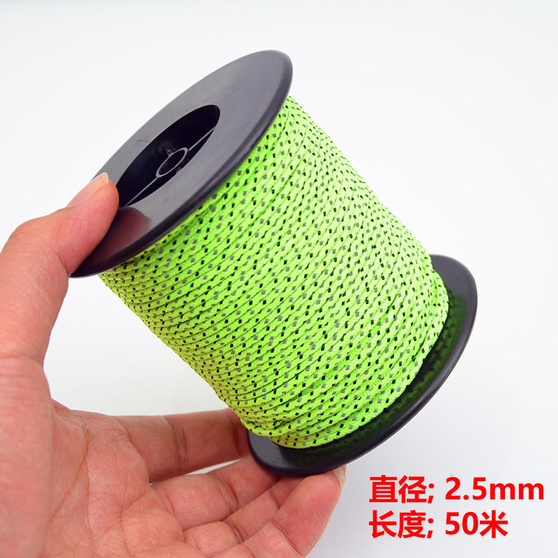 Cuerda Reflectante de 2.5mm 50m de PE para Exteriores, Camping, Lona, Resistente al Viento, Cuerda de Almacenamiento de Una Sola Capa para Todas las Estaciones
