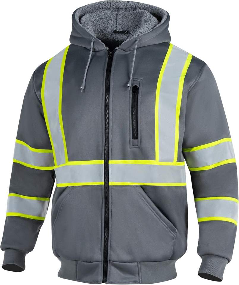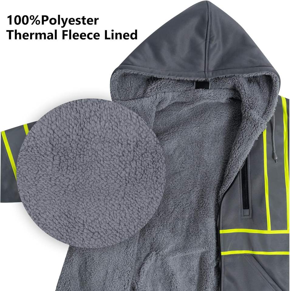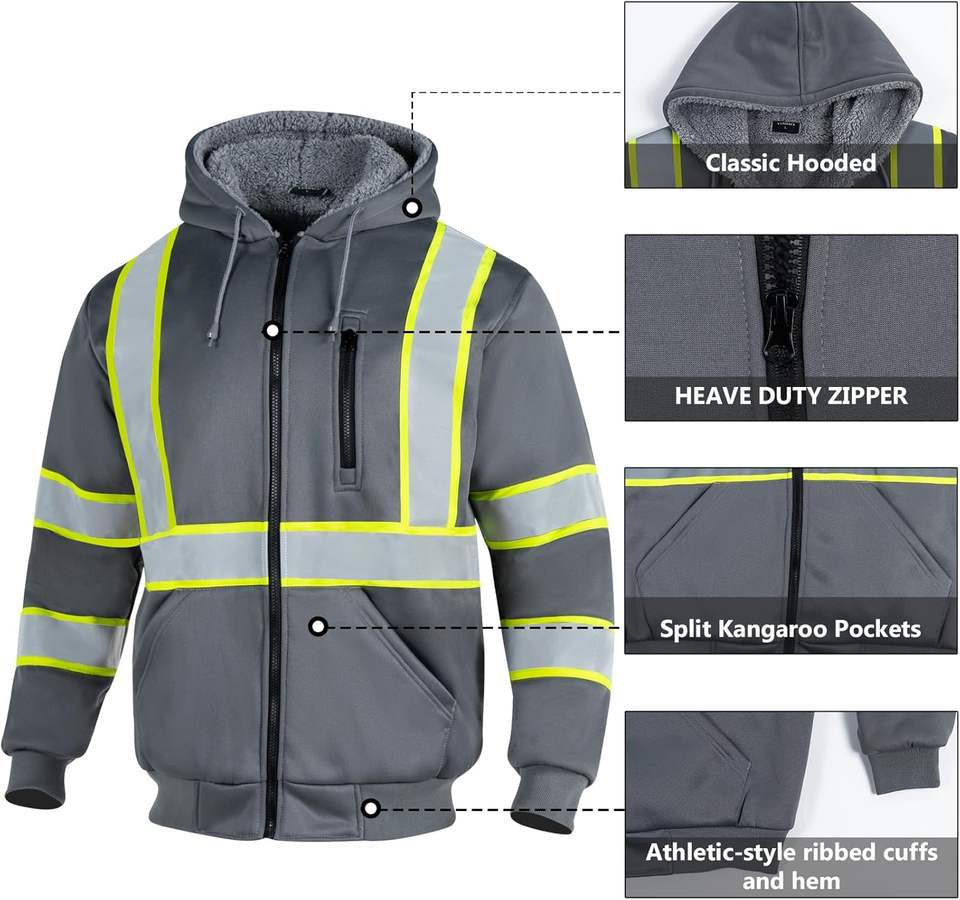 Chaqueta con Capucha Reflectante de Seguridad Clase 2 ANSI, Ropa de Trabajo de Invierno de Alta Calidad, Alta Visibilidad