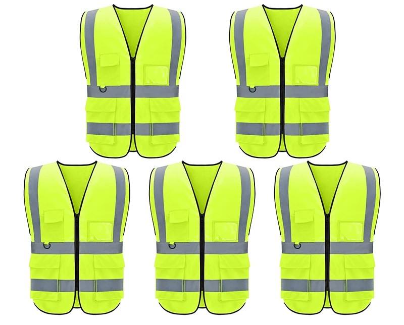 Chaleco reflectante de seguridad, ropa de trabajo personalizada de alta visibilidad, ropa de malla para chaleco de construcción con cremallera, bolsillos múltiples, fluorescente