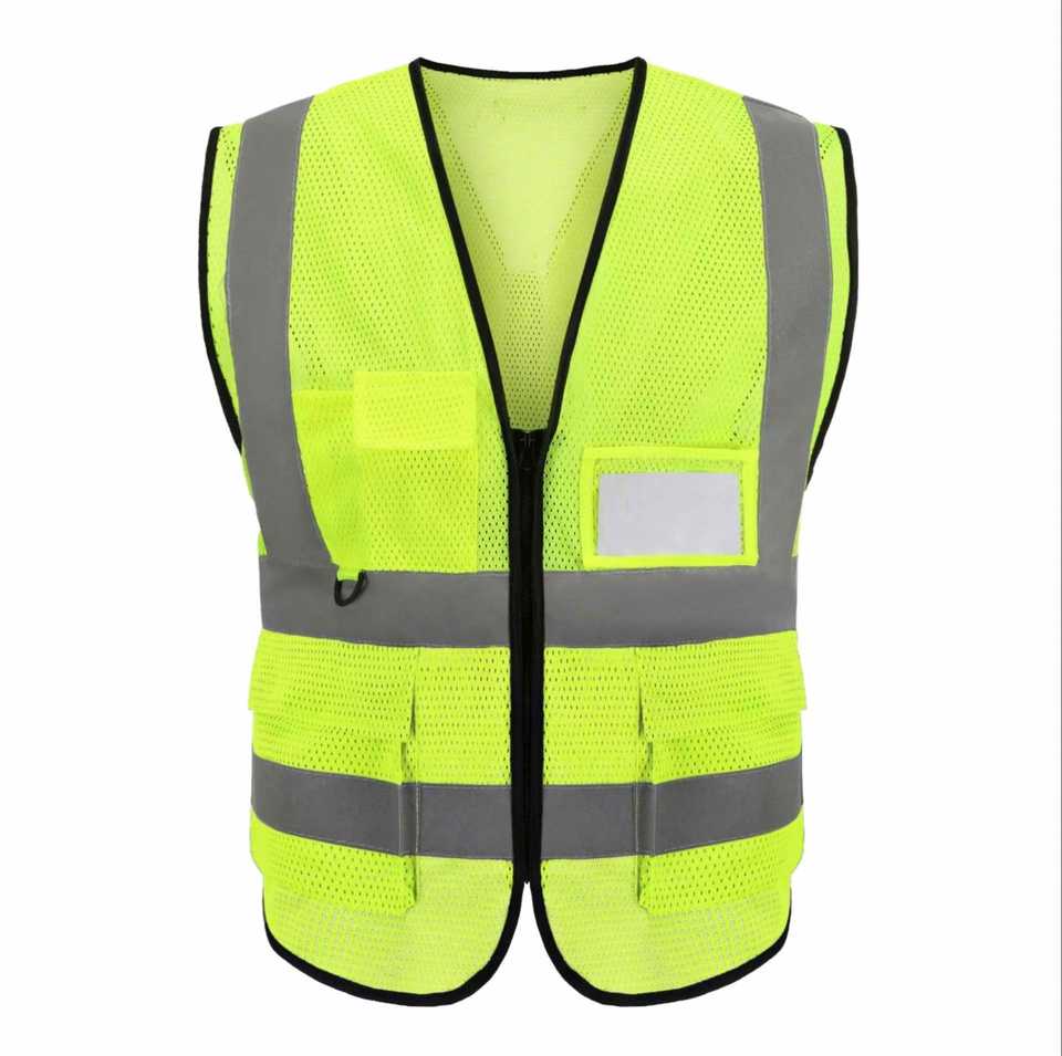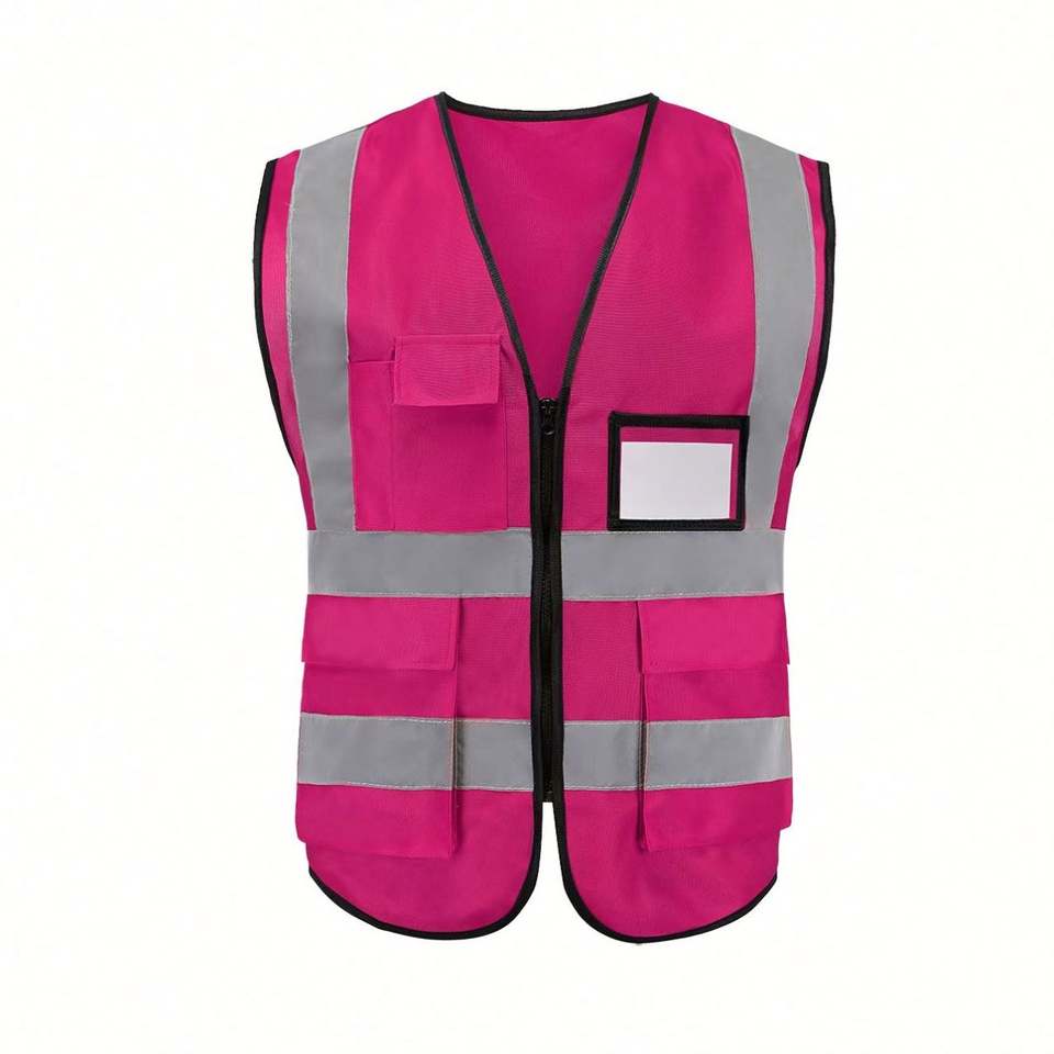 Chaleco de Seguridad Reflectante con Múltiples Bolsillos, Cierre de Cremallera, Secado Rápido, Impresión por Transferencia Térmica, Personalizado, Alta Visibilidad, Ropa de Trabajo de Poliéster