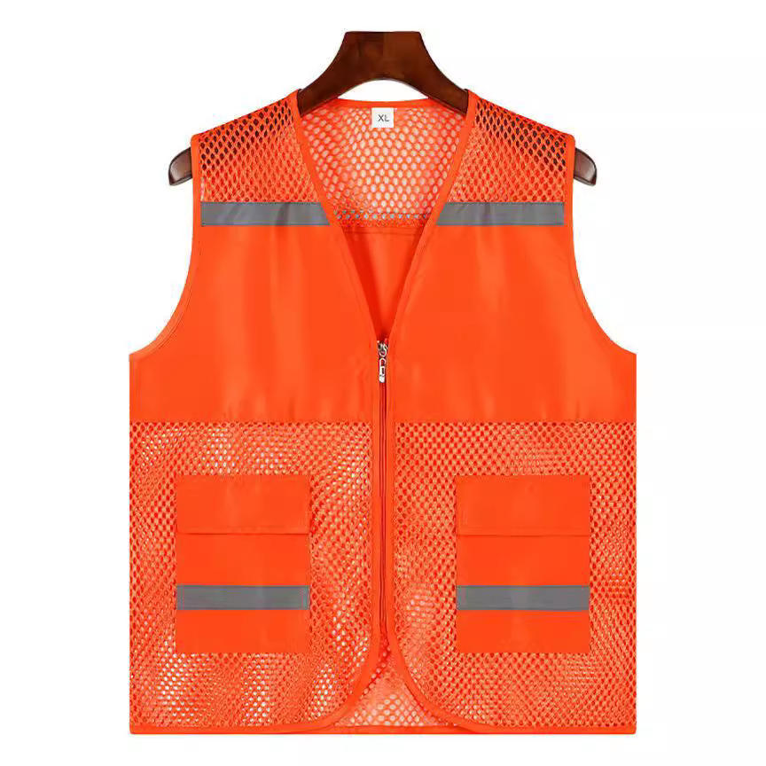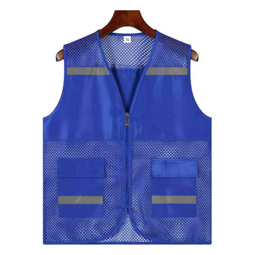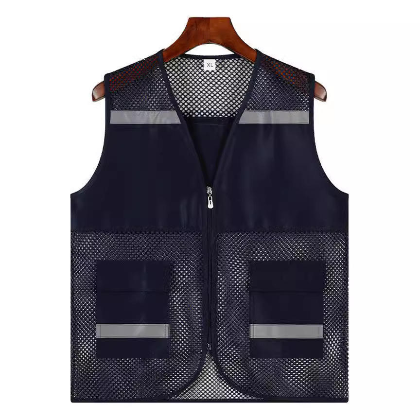 Chaleco de seguridad reflectante de malla azul marino XL para trabajo con bolsillos y franjas reflectantes para trabajos al aire libre