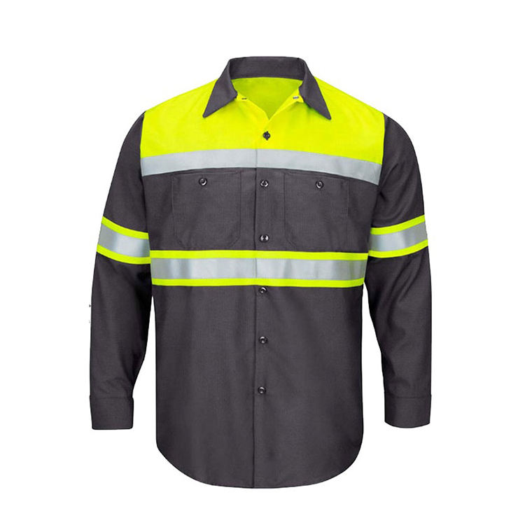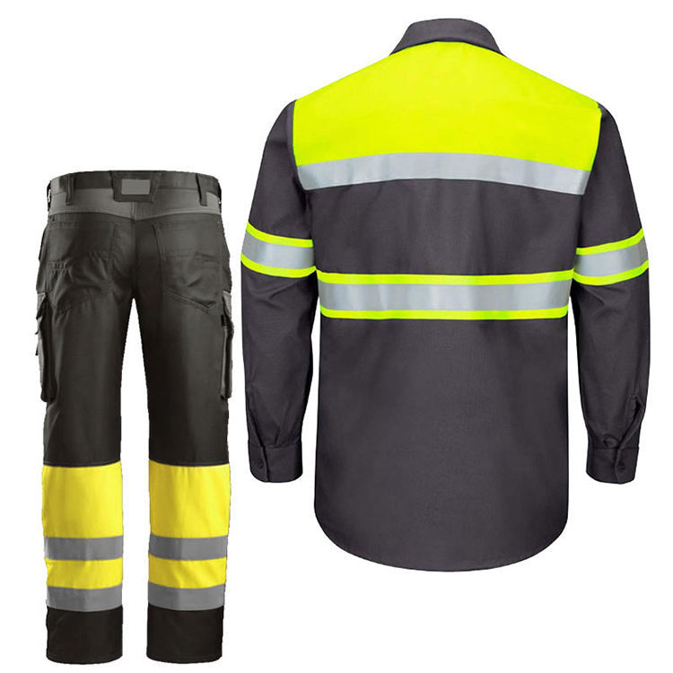 Camisa de Trabajo de Manga Larga con Botones y Pantalones con Rayas Reflectantes para Construcción en Carretera, Uniformes de Trabajo Personalizados