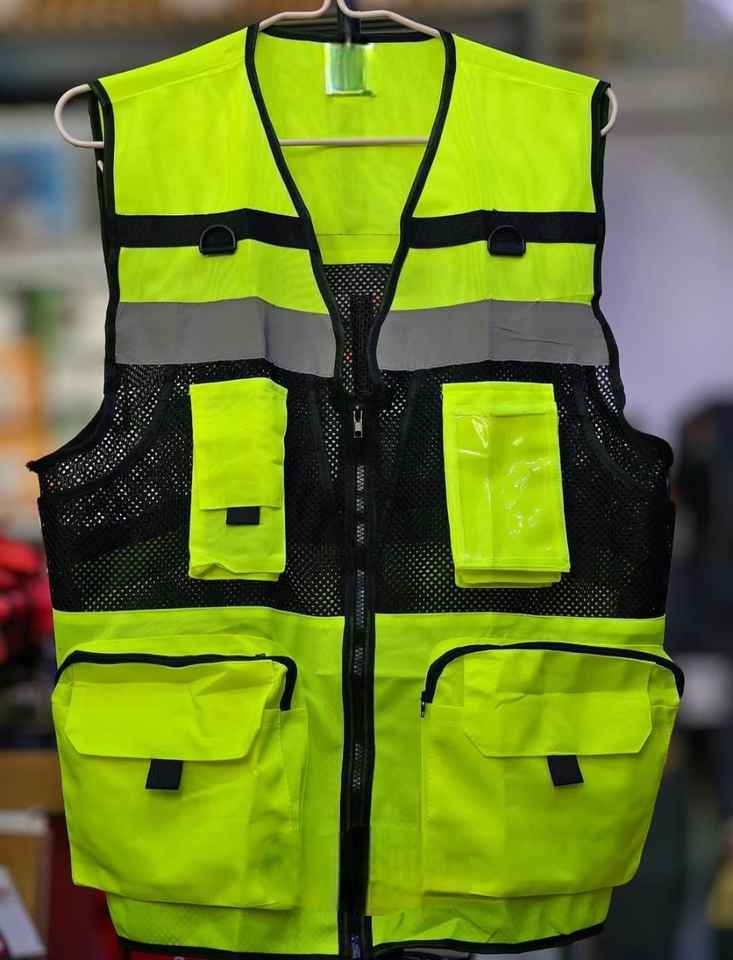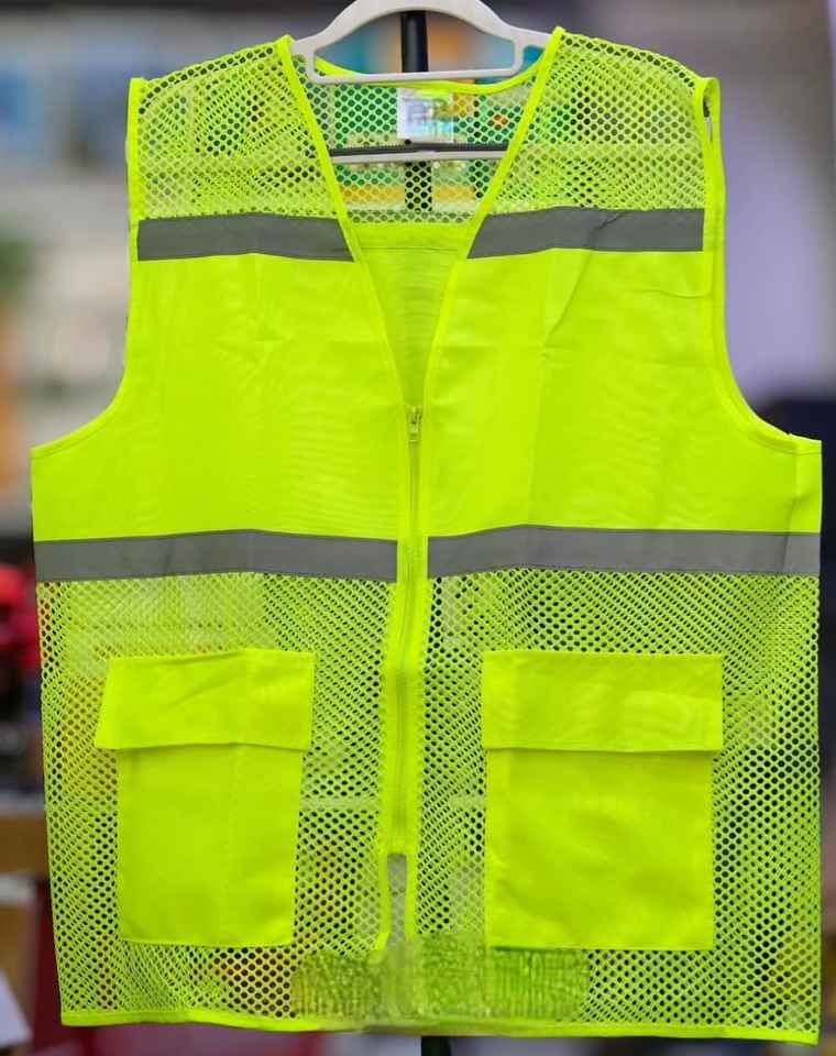 Chaleco reflectante de tela reflectante de alta visibilidad con respaldo de poliéster 100% al por mayor estilo de rebabas desmontable de tela reflectante