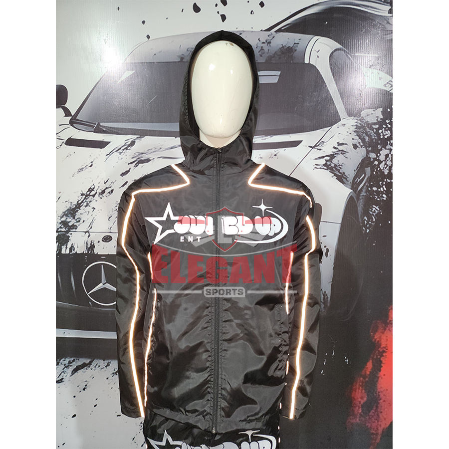 Chándal Reflector de nailon para hombre, chaqueta cortavientos de dos piezas con logotipo personalizado, pantalones ligeros a prueba de viento y transpirables